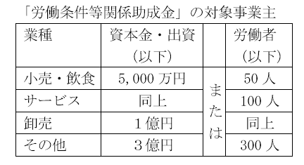 「労働条件等関係助成金」は中小企業対象